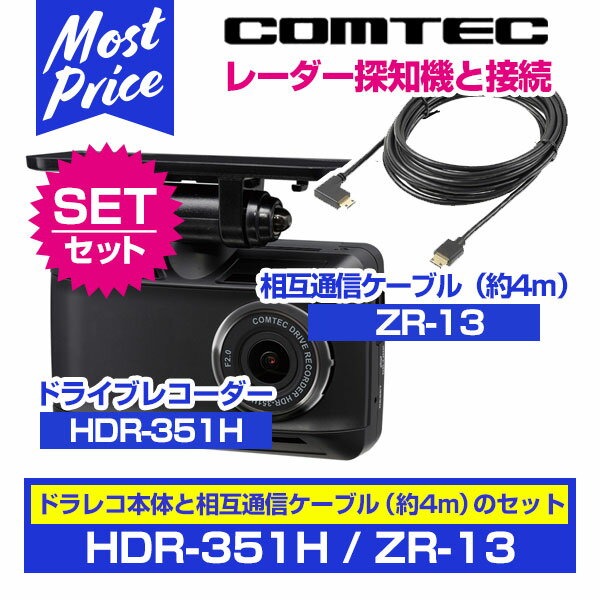 コムテック ドライブレコーダー 【HDR-351H】と 相互通信ケーブル 長さ約4m 【ZR-13】 のセット