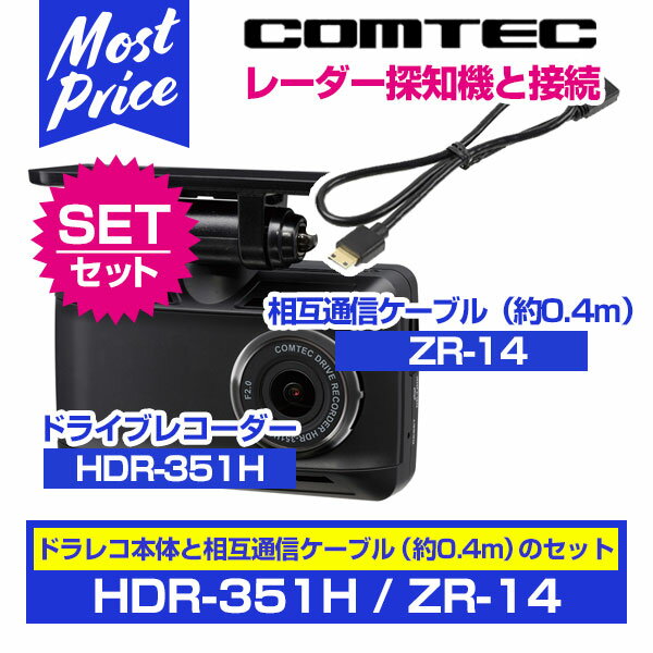 コムテック ドライブレコーダー 【HDR-351H】と 相互通信ケーブル 長さ約0.4m 【ZR-14】 のセット