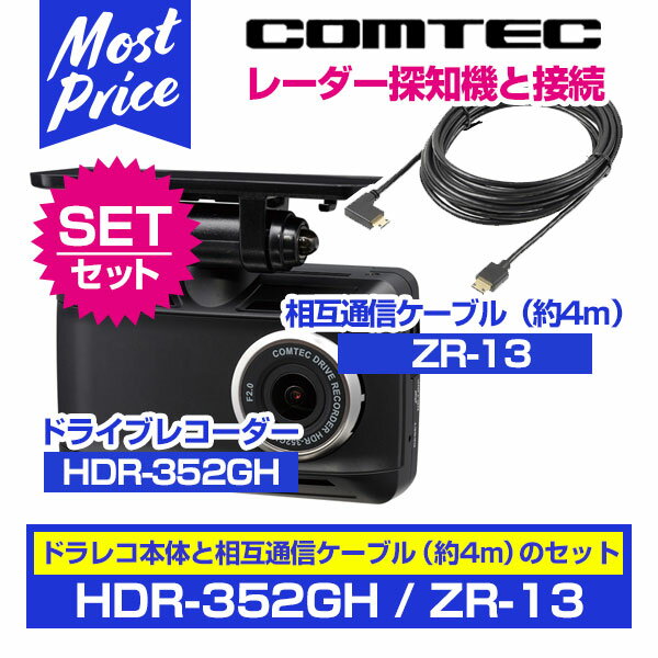 コムテック ドライブレコーダー 【HDR-352GH】と 相互通信ケーブル 長さ約4m 【ZR-13】 のセット