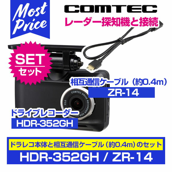 コムテック ドライブレコーダー 【HDR-352GH】と 相互通信ケーブル 長さ約0.4m 【ZR-14】 のセット