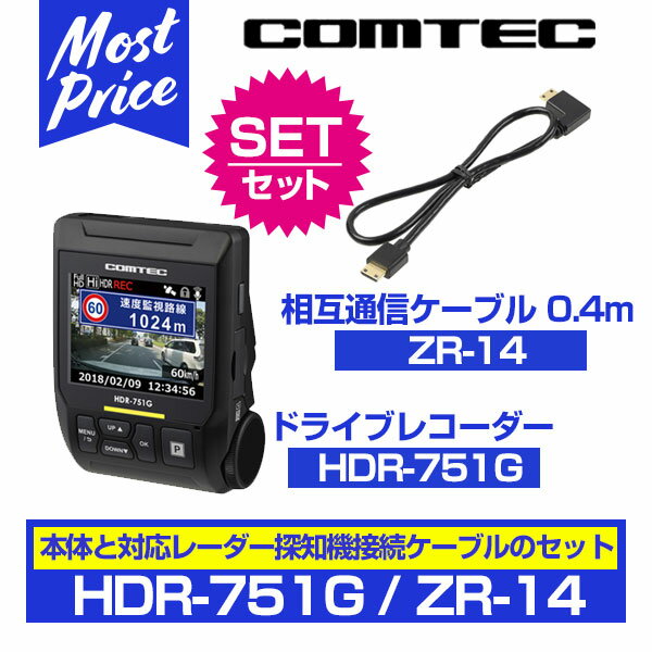 コムテック ドライブレコーダー 【HDR-751G】とドライブレコーダー相互通信ケーブル(0.4m) 【ZR-14】のセット