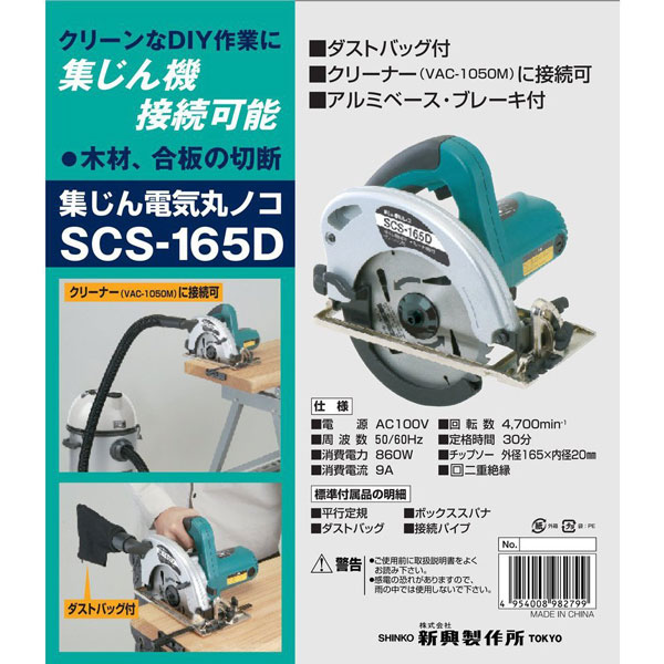 商品名 新興 集じん電気丸ノコ SCS-165D 商品説明 ●電気ブレーキ付きで安全。