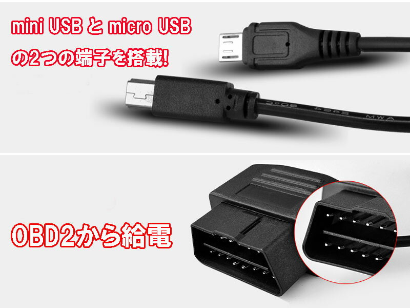 OBD2 miniUSB microUSB 変換アダプター OBD2ドライブレコーダー ・レーダー探知機スマホなど用miniUSB microUSB 変換アダプター 【OBD2 miniUSB microUSB 変換アダプター】OBD2コネクタからminiUSBとmicroUSBへ接続できるアダプターです。