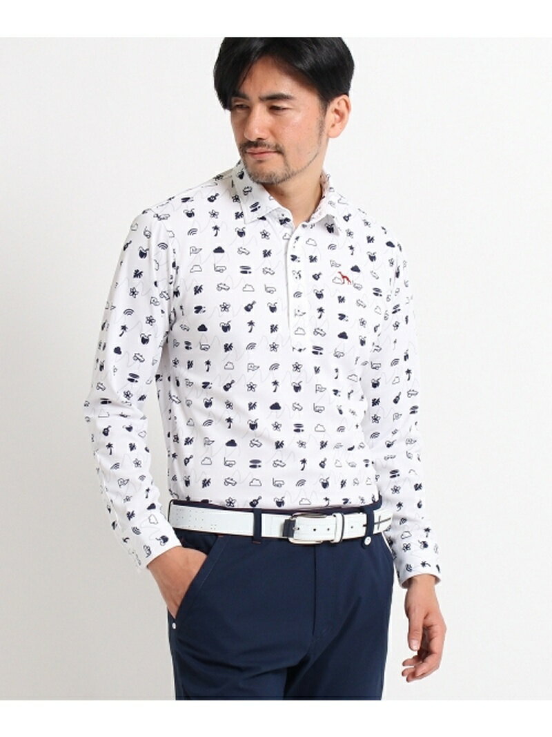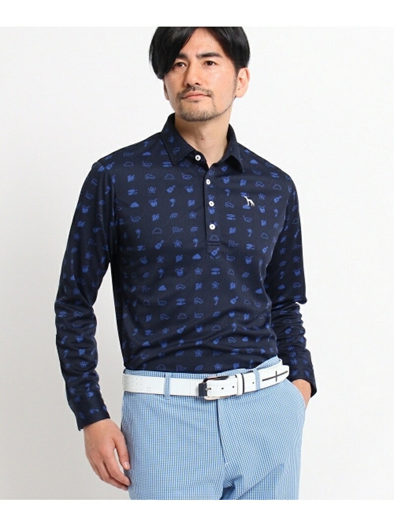 adabat(アダバット)トロピカルプリントポロシャツ南国のリゾートを思わせるトロピカルモチーフのプリントが散りばめられたポロシャツ。